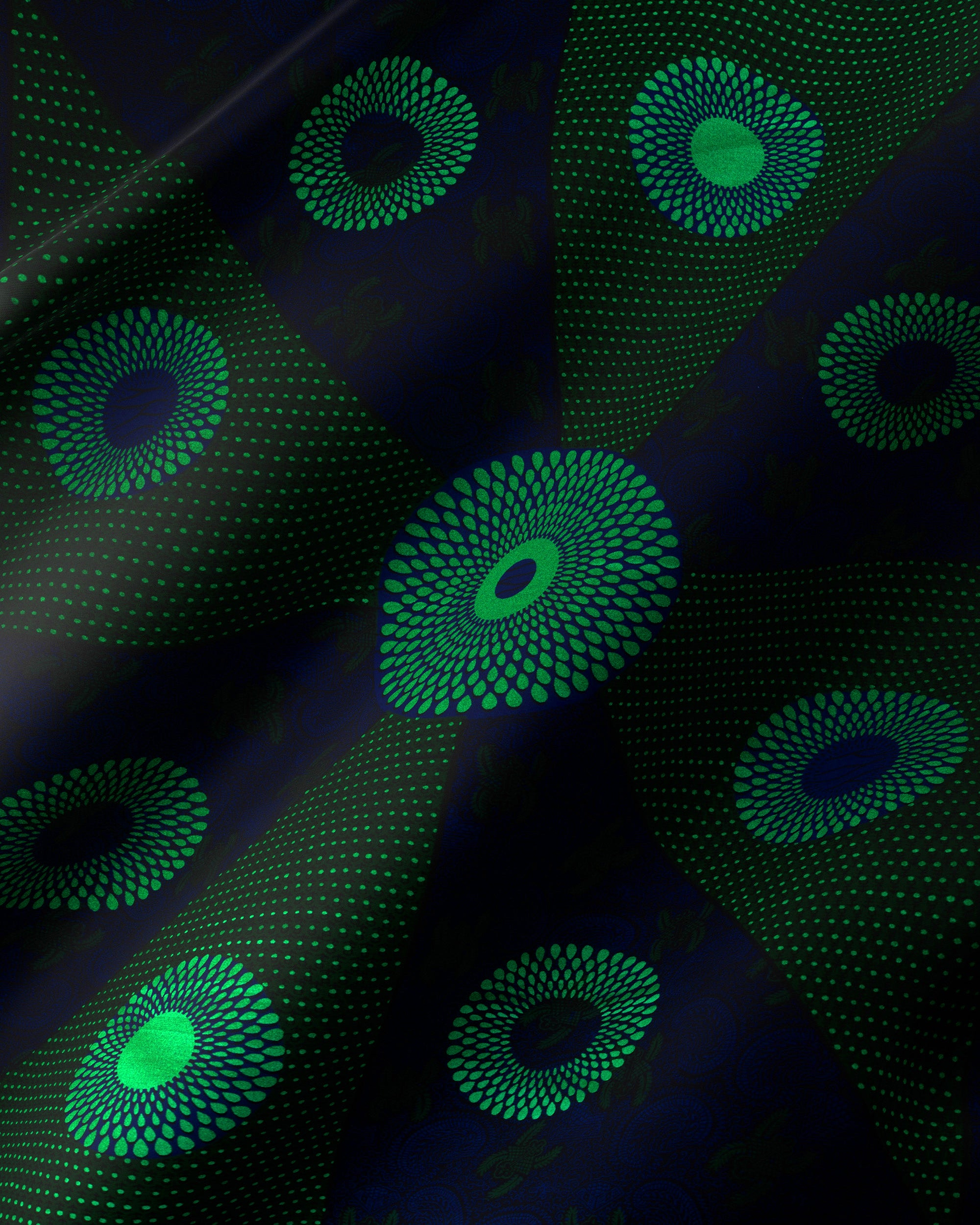 Sky Wax is an elegant twist on Vlisco’s Wax Hollandais. Each piece is dipped in a dark overdye, resulting in a deep, intense colour. The final touch is a metallic embellishment, adding a shimmering contrast to the dark tones, elevating its overall design. The resulting line of fabrics have a chic and smouldering range of looks.