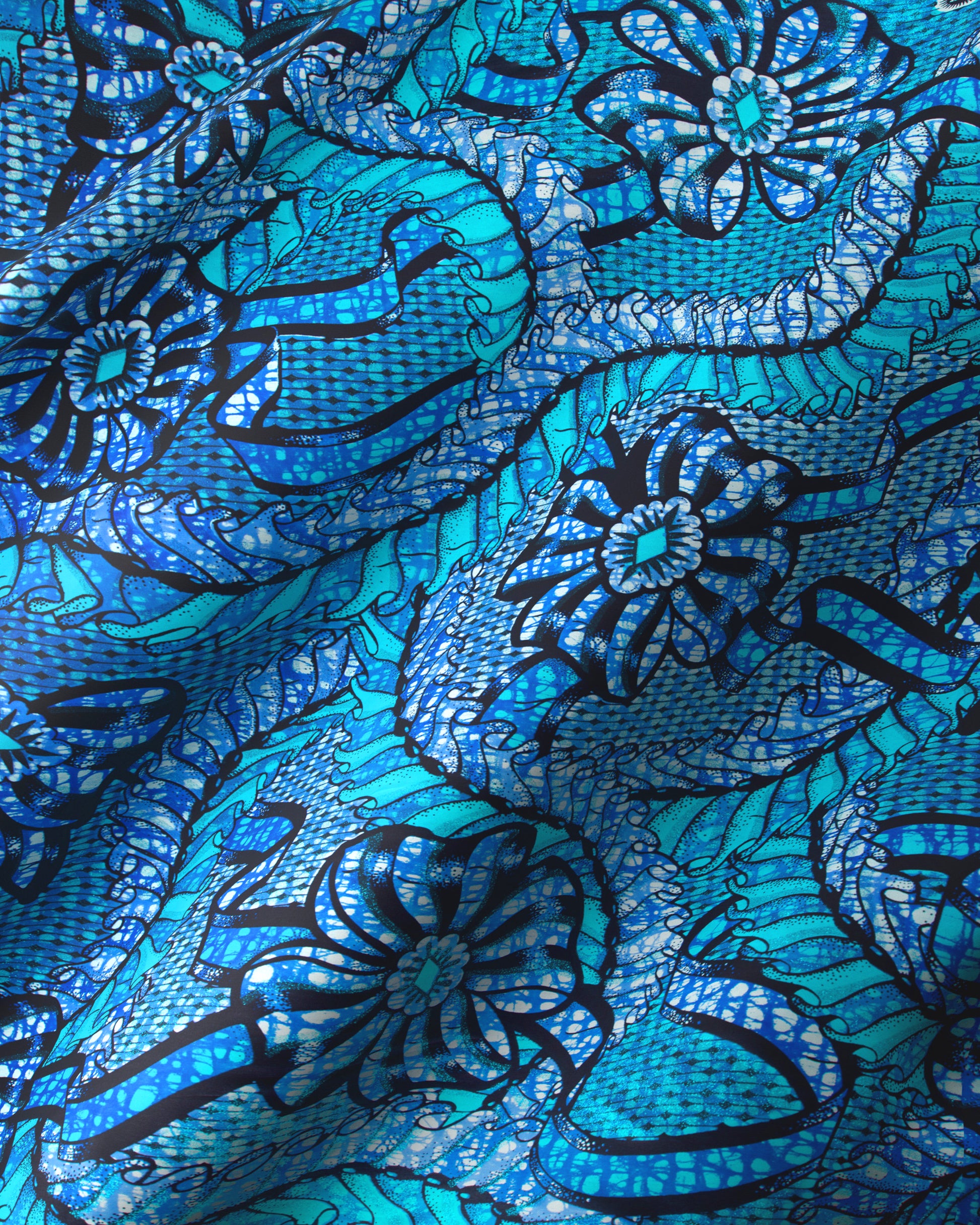 Grand Super-Wax stands out with its rich colours and intricate designs, bringing each detail to life. This exclusive Vlisco fabric is known for its signature shine, created with a delicate layer of sparkles and a unique finishing process. The cotton satin base not only enhances the vibrant colours but also provides a luxurious feel. Each piece showcases the meticulous craftsmanship and design focus that Vlisco is renowned for.