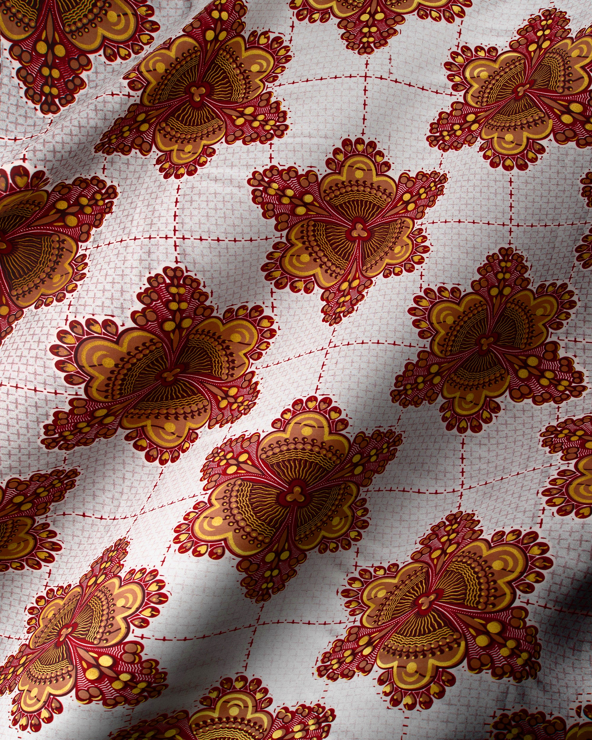 Wax Glitter Glam is a luxurious print design on cotton satin, richly embellished from edge-to-edge with shimmering metallics covering 40-60% of the surface. With minimal use of block colours, Wax Glitter Glam is treated with a lustrous finish.