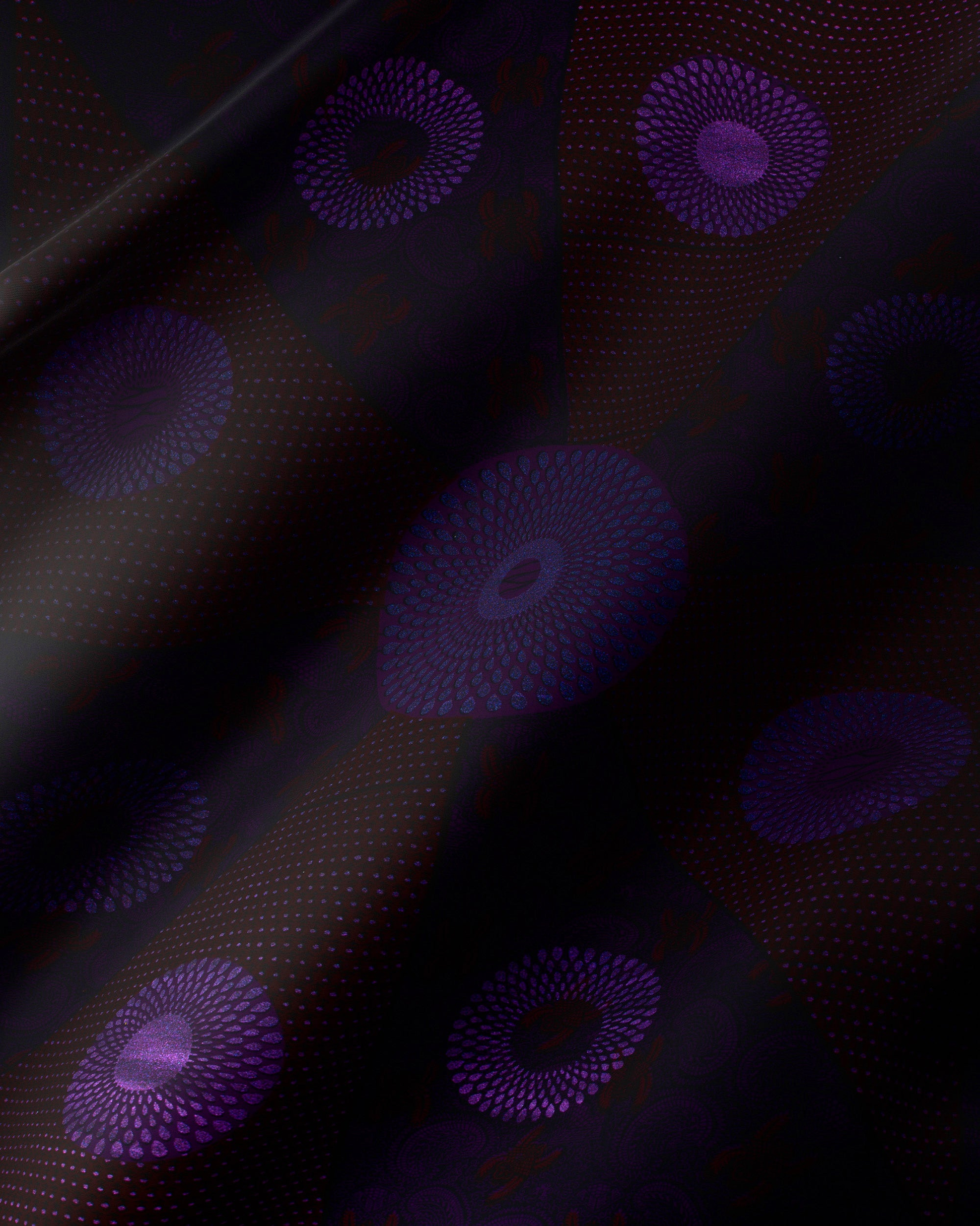 Sky Wax is an elegant twist on Vlisco’s Wax Hollandais. Each piece is dipped in a dark overdye, resulting in a deep, intense colour. The final touch is a metallic embellishment, adding a shimmering contrast to the dark tones, elevating its overall design. The resulting line of fabrics have a chic and smouldering range of looks.